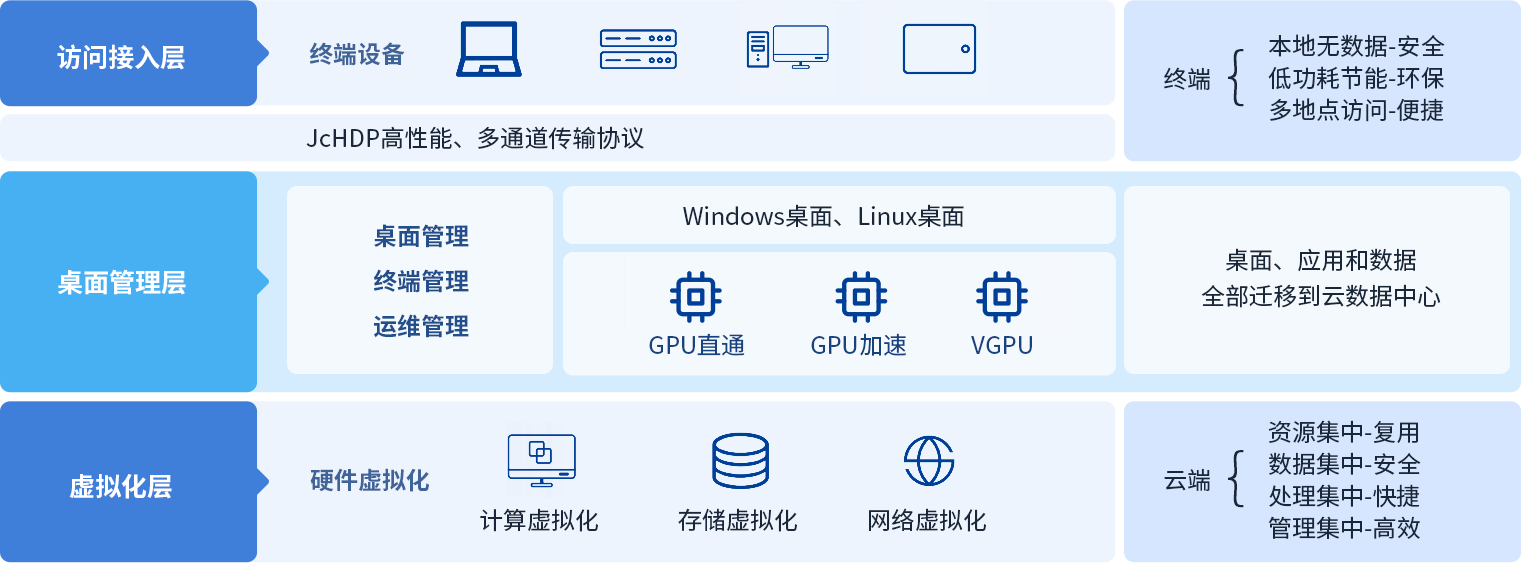 巨宸工业云桌面软件(简称“巨宸DT”) 是基于国产自主研发, 全面实现稳定可靠、高可用、高性能的针对工业场景的桌面虚拟化系统。