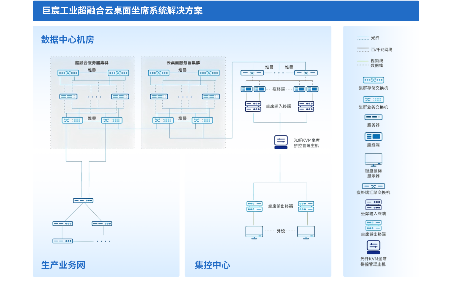本方案融合超融合、云桌面与分布式坐席技术。超融合实现计算、存储、网络资源统一管理与灵活调配,云桌面提供安全高效的管理操作与便捷运维,分布式坐席打破信息孤岛,提升跨区域协同效率。三者协同,旨在解决资源利用率低、运维成本高、数据安全风险大及坐席协作效率差等痛点,为工业集控中心打造高效、安全、智能的一体化管控体系。