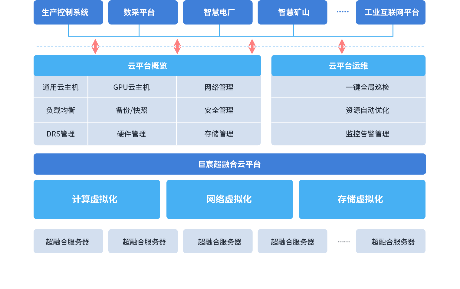 集工业硬件服务器管理与多个工业云平台集群纳管于一体的集中化管控平台,支持对异构硬件设备、工业云集群进行统一调度。提供资源可视化监控、弹性分配、故障智能告警与全生命周期管理功能,简化工业 IT 基础设施与多集群运维流程,提升资源利用率与跨集群协同效率。